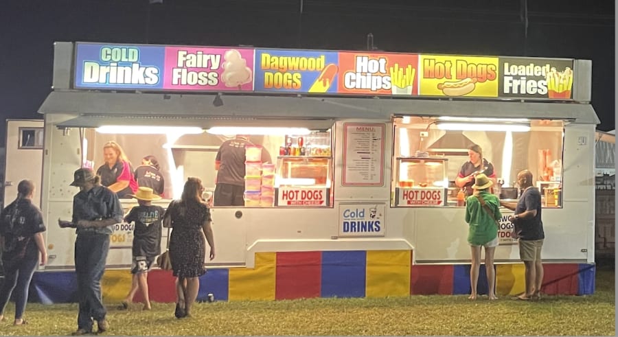 Let our mobile food van give your event that real carnival theme. We sell traditional carnival food, HOMEMADE Dagwood Dogs, Hot Chips, Cold Drinks and more.
